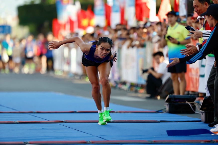Ở đường chạy full marathon nữ (42,195km) ở Tiền Phong Marathon 2026 diễn ra sáng 29-3, tại Khánh Hòa, tuyển thủ Hoàng Thị Ngọc Hoa dù chỉ về đích ở vị trí thứ 2, nhưng trở thành tâm điểm với hình ảnh xúc động. Khi chỉ còn cách vạch đích khoảng 20m, chân chạy sinh năm 2000 gần như kiệt sức. Những bước chân của cô loạng choạng, rồi đổ gục xuống đường, trước vạch đích chỉ chưa tới 1 mét.