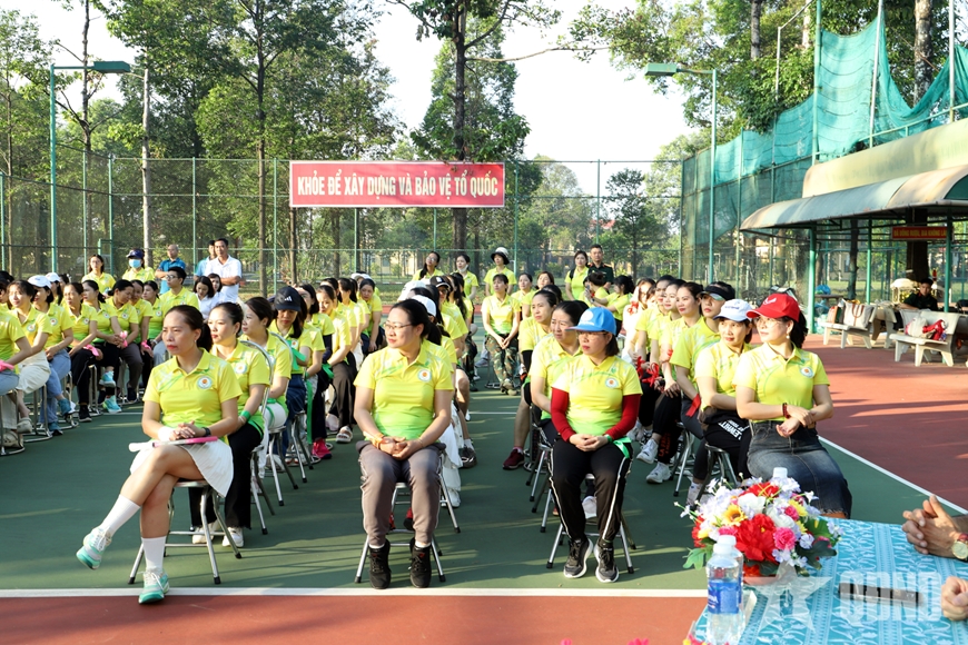 | Đông đảo cán bộ, hội viên phụ nữ các cơ quan, đơn vị, địa phương tham gia giao lưu thể thao. |