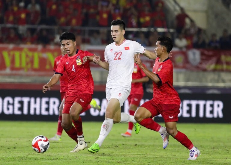 Tiền đạo Tiến Linh (số 22) trong trận đội tuyển Việt Nam thắng tuyển Lào 4-1. Ảnh: ĐỨC CƯỜNG