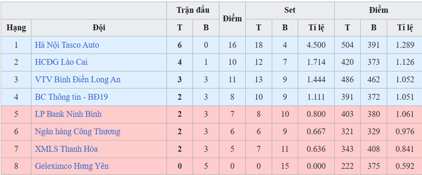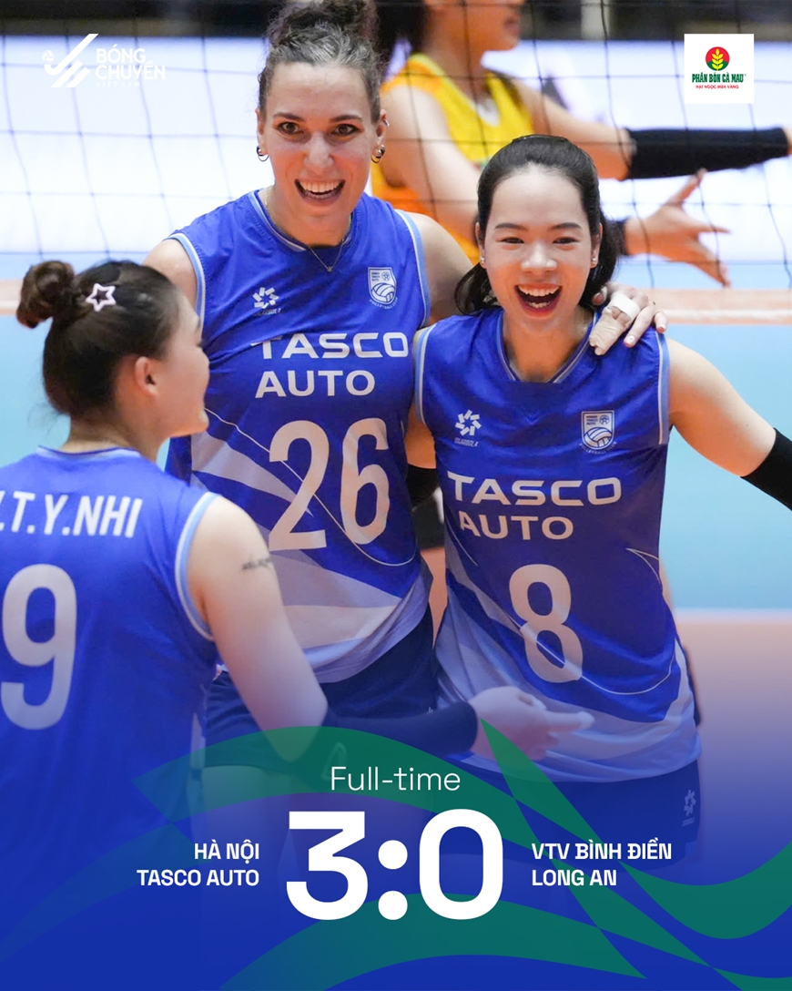 Thắng VTV Bình Điền Long An 3-0, Hà Nội Tasco Auto duy trì mạch trận toàn thắng với 16 điểm, trong khi VTV Bình Điền Long An tạm xếp thứ 3 với 11 điểm.