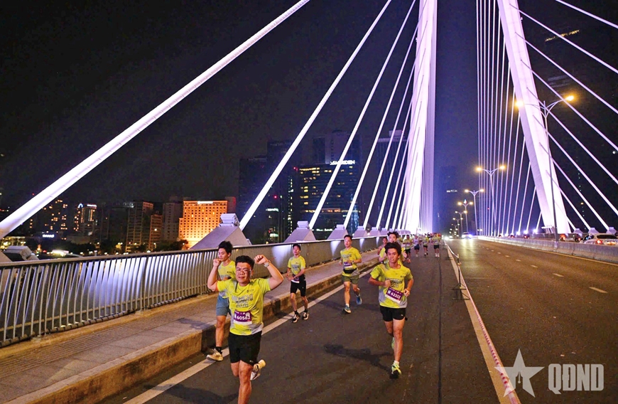| Các vận động viên qua cầu Ba Son. |