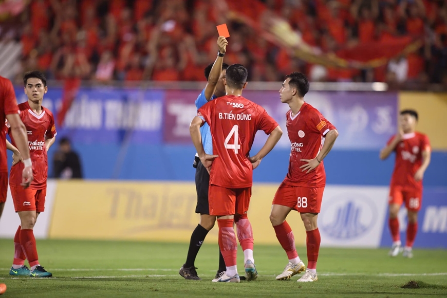 Trong ngày mừng sinh nhật thứ 30, trung vệ Bùi Tiến Dũng phải nhận thẻ đỏ, khi Thể Công Viettel hòa Ninh Bình FC 1-1 tại vòng 6 V-League 2025-2026.