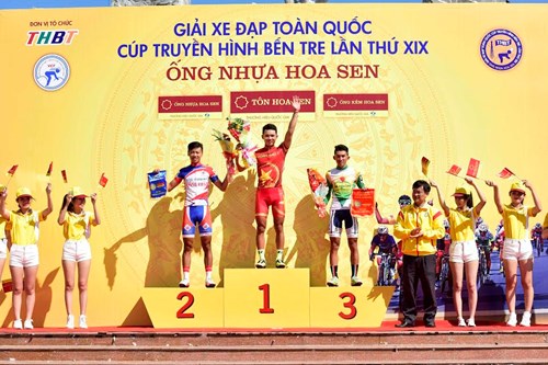 | Các cua-rơ tham dự Giải xe đạp toàn quốc Cúp Truyền hình Bến Tre lần thứ 19 năm 2017-Ống nhựa Hoa Sen sẽ thi đấu 9 chặng, với tổng cự ly dài 1.061km để tranh chức vô địch đồng đội, danh hiệu áo vàng chung cuộc, áo xanh và áo trắng giành cho tay đua trẻ xuất sắc với tổng giải thưởng gần 350 triệu đồng. |