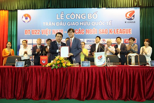 Đại diện LĐBĐ hai nước ký kết Biên bản ghi nhớ hợp tác tổ chức trận đấu giao hữu bóng đá quốc tế giữa Đội tuyển U22 Việt Nam và Đội tuyển các ngôi sao K-League.