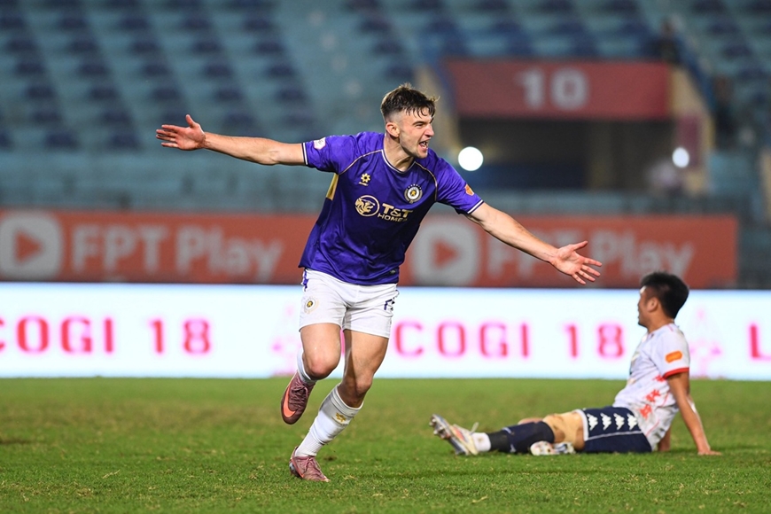 | David Fisher ghi bàn mở tỷ số cho đội bóng Thủ đô. Ảnh: Hà Nội FC |