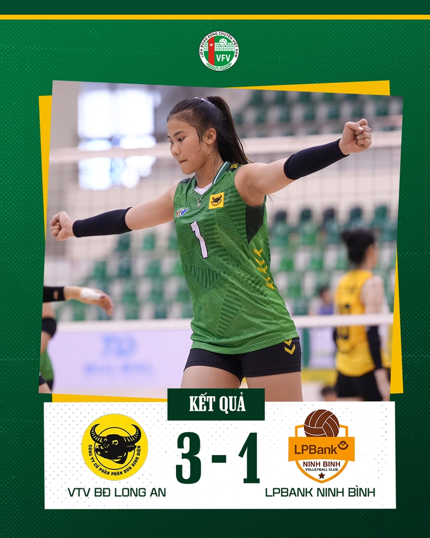 | VTV Bình Điền Long An đánh bại LPBank Ninh Bình 3-1. Ảnh: VFV |