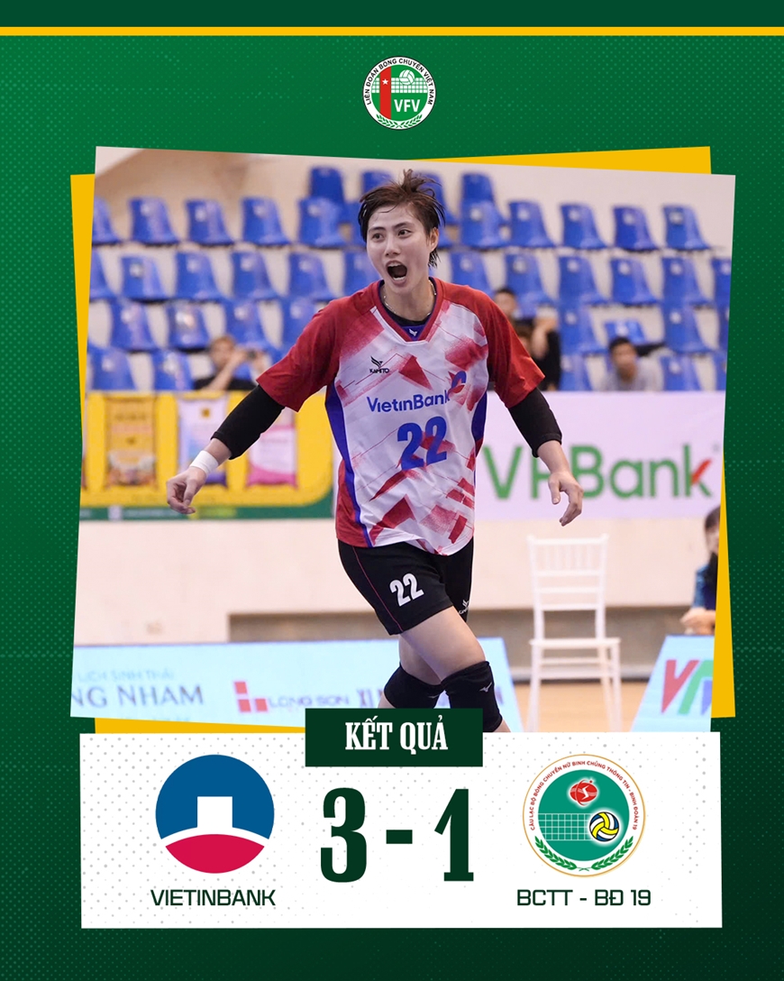 Trước đó, ở trận bán kết 2 nội dung nữ, câu lạc bộ Binh chủng Thông tin - Binh đoàn 19 thua câu lạc bộ Ngân hàng Công Thương với tỷ số 1-3. Tại chung kết, Ngân hàng Công thương sẽ chạm trán VTV Bình Điền Long An, diễn ra lúc 16 giờ ngày 23-3.