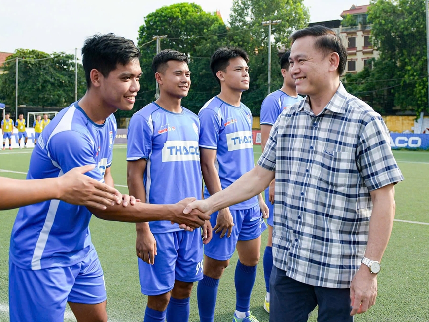 Ông Trần Anh Tú, Phó chủ tịch Liên đoàn Bóng đá Việt Nam động viên hai đội. Ảnh: KHƯƠNG XUÂN |