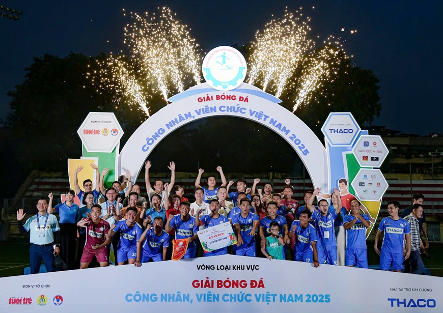 Chiều 5-10, tại Hà Nội, Giải bóng đá công nhân, viên chức Việt Nam 2025 khu vực miền Bắc diễn ra trận chung kết kịch tính giữa đội bóng Công đoàn Công an nhân dân và Công đoàn Ngân hàng Việt Nam.