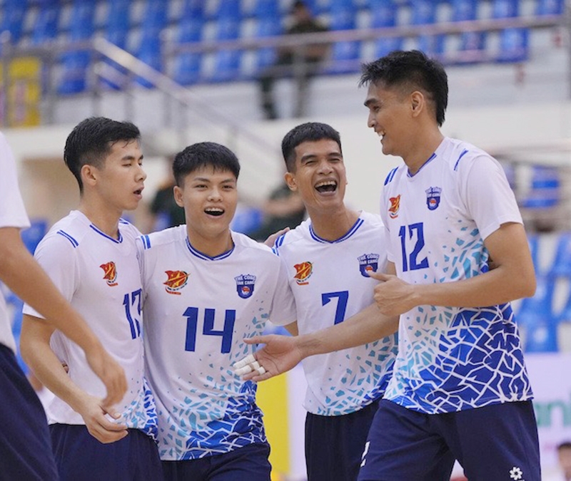 Các vận động viên Thể Công-Tân Cảng mừng chiến thắng trước Công an TP Hồ Chí Minh. Ảnh: VFV |