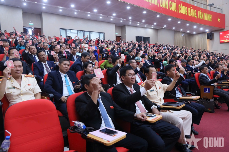 Đại hội biểu quyết thông qua Nghị quyết Đại hội đại biểu Đảng bộ tỉnh Quảng Ngãi nhiệm kỳ 2025-2030.