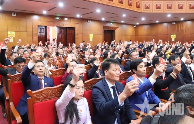 Biểu quyết các nội dung tại phiên bế mạc Đại hội Đại biểu Đảng bộ tỉnh Đắk Lắk.