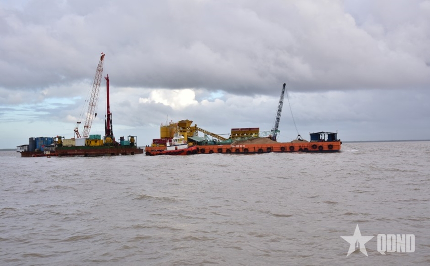 | Thi công cảng lưỡng dụng tổng hợp Hòn Khoai. |