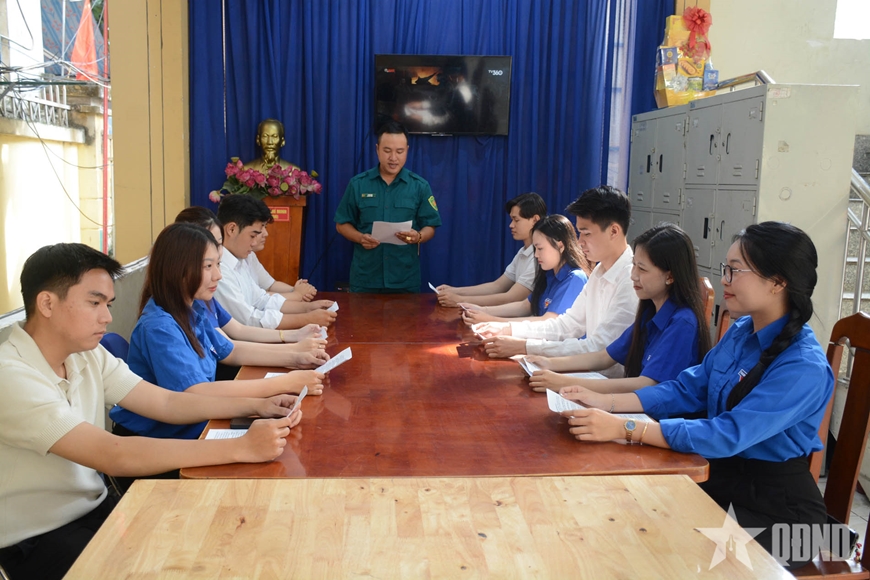 | Cán bộ, đoàn viên, thanh niên phường Tân Sơn Nhì (TP Hồ Chí Minh) trao đổi, tuyên truyền về Đại hội XIV của Đảng. |
