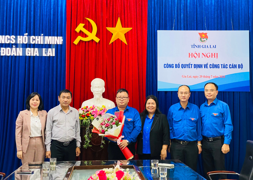 Anh Nguyễn Chí Hiếu, Phó bí thư Tỉnh đoàn Gia Lai (ôm hoa). Ảnh: NVCC