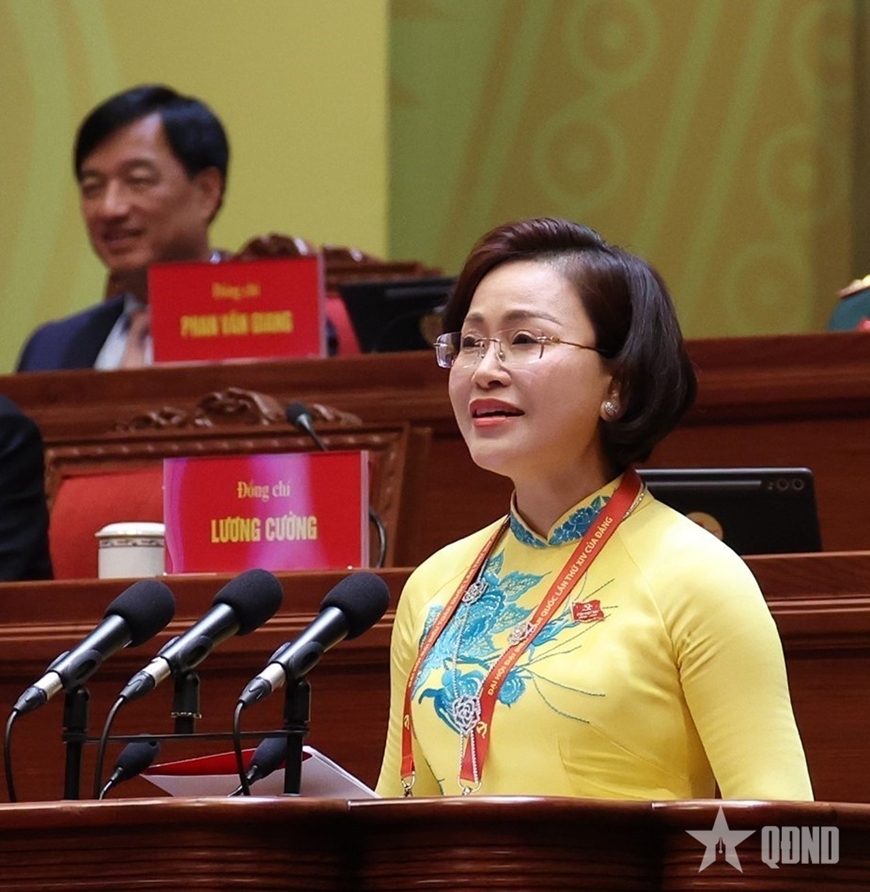| Đồng chí Trần Thị Thanh Thủy phát biểu tham luận tại Đại hội. Ảnh: PHƯƠNG HOA