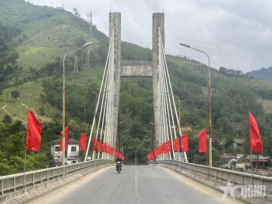 | Cầu Đakrông (xã Đakrông, tỉnh Quảng Trị) trong dịp diễn ra Đại hội XIV của Đảng. |