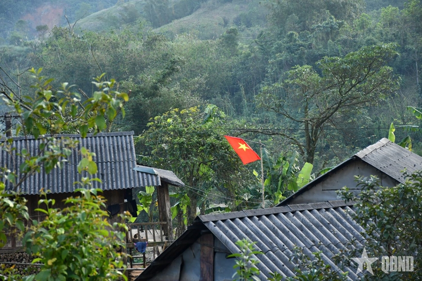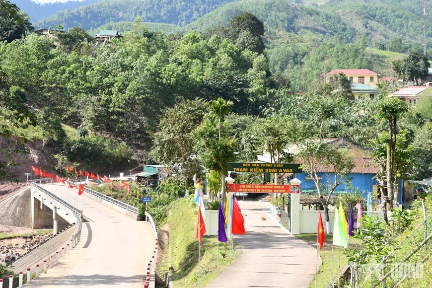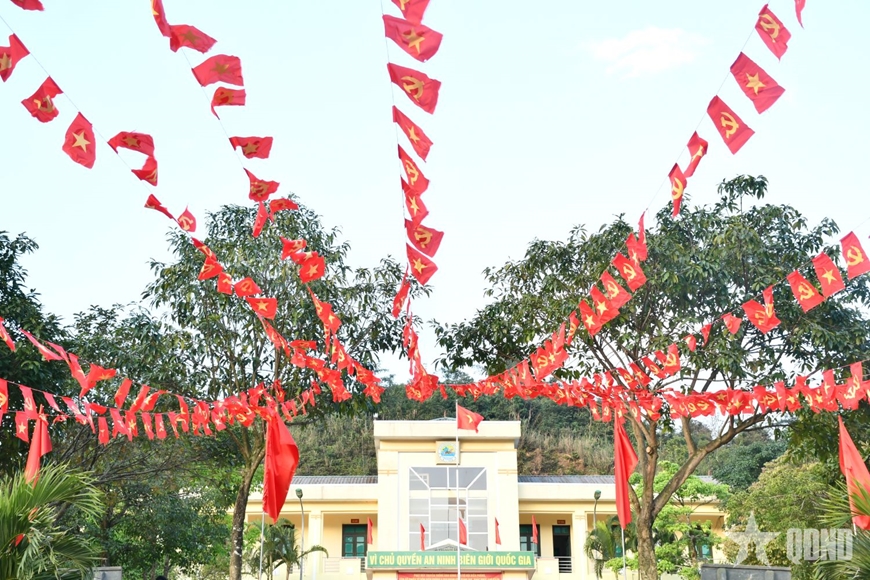 | Đồn Biên phòng A Vao rực rỡ sắc đỏ chào mừng Đại hội XIV của Đảng. |