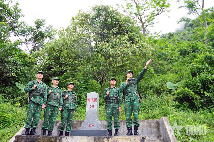 | Cán bộ, chiến sĩ Đồn Biên phòng Pù Nhi, Ban chỉ huy BĐBP tỉnh Thanh Hóa tuần tra bảo vệ đường biên, cột mốc. |