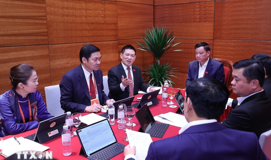 Chiều 20-1, tiếp tục chương trình Đại hội XIV của Đảng, các đại biểu làm việc tại Đoàn để thảo luận các văn kiện Đại hội.