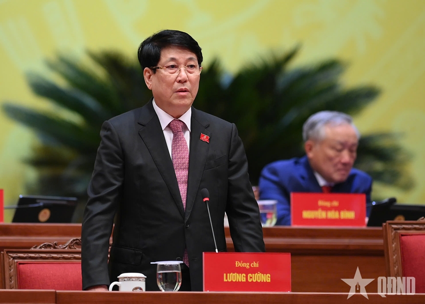 Buổi sáng, đồng chí Lương Cường, Ủy viên Bộ Chính trị, Chủ tịch nước Cộng hòa xã hội chủ nghĩa Việt Nam thay mặt Đoàn Chủ tịch điều hành phiên họp.