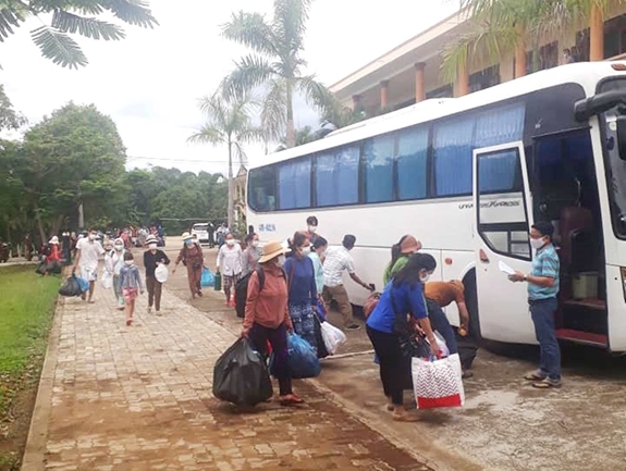 Các công dân phấn khởi lên xe để trở về với gia đình.
