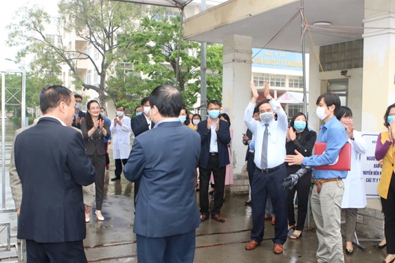 Cũng trong sáng 28-3, Bê%3ḅnh viê%3ḅn dã chiến số 2 cũng đã chúc mừng và cho xuất viê%3ḅn 27 bê%3ḅnh nhân Covid-19 đã được điều trị khỏi bê%3ḅnh sau nhiều lần xét nghiê%3ḅm âm tính với virus SARS-CoV-2.