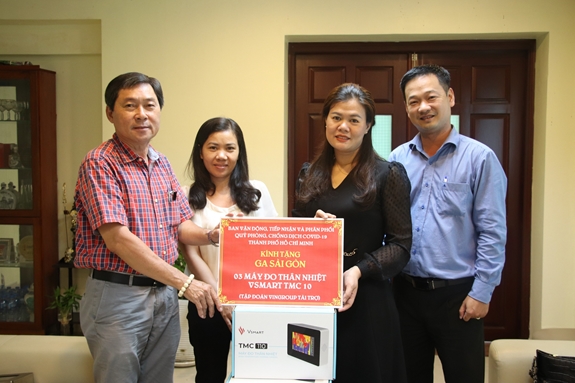 Trao máy đo thân nhiệt tặng các đơn vị vận tải tại TP Hồ Chí Minh: Ngày 12-5, Ủy ban MTTQ TP Hồ Chí Minh đã trao máy đo thân nhiệt tặng các đơn vị: Ga Sài Gòn, Bến xe Miền Đông, Bến xe Miền Tây. Đây là thiết bị do Tập đoàn Vingroup gửi đến ủng hộ Quỹ Phòng, chống dịch Covid-19 của thành phố. Các đơn vị được nhận máy đo thân nhiệt là những đơn vị vận tải lớn của TP Hồ Chí Minh, mỗi ngày phục vụ hàng trăm nghìn lượt khách nên công tác phòng, chống dịch Covid-19 vẫn thực hiện nghiêm túc. Các đơn vị sẽ lắp ráp và sử dụng tại các cổng chính trong thời gian tới. Với các máy đo thân nhiệt được tăng cường lần này, các đơn vị vận tải lớn của thành phố sẽ phát hiện nhanh các trường hợp nguy cơ cao, ngăn chặn sự lây nhiễm cộng đồng. (Tin, ảnh: HỒNG GIANG).