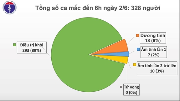 Báo cáo của Tiểu ban Điều trị (Ban chỉ đạo quốc gia phòng, chống dịch Covid-19) cho biết, tính đến nay, tại Việt Nam đã có 293 trường hợp được công bố khỏi bệnh, chiếm 89%. Hiện cả nước còn 35 bệnh nhân đang được điều trị tại các bệnh viện tuyến tỉnh, tuyến Trung ương trong tình trạng sức khỏe cơ bản ổn định. Trong số các bệnh nhân Covid-19 đang được điều trị, theo dõi sức khỏe tại các cơ sở y tế, chỉ còn 18 bệnh nhân dương tính với virus SARS-CoV-2; 7 bệnh nhân có kết quả xét nghiệm âm tính lần 1 với virus SARS-CoV-2; 10 bệnh nhân có kết quả âm tính 2 lần trở lên với virus SARS-CoV-2.