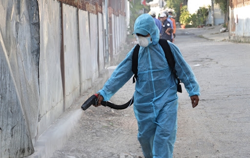 Phun thuốc phòng dịch tại bến xe. Ảnh minh họa |