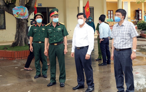 | Đồng chí Dương Văn Thái (thứ hai, từ phải sang) kiểm tra công tác chuẩn bị điểm cách ly tập trung tại huyện Yên Dũng. |