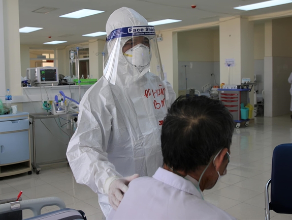 | Các y, bác sĩ Bệnh viện Bạch Mai chăm sóc bệnh nhân mắc Covid-19 tại Bệnh viện Đại học Kỹ thuật Y tế Hải Dương. |