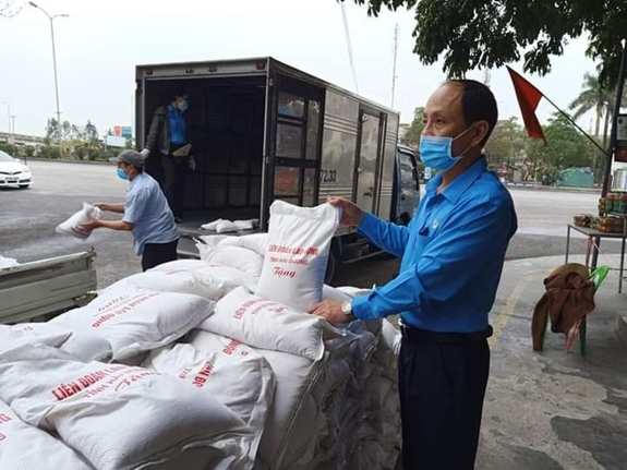 | Liên đoàn lao động tỉnh hỗ trợ gạo cho công nhân lao động. |