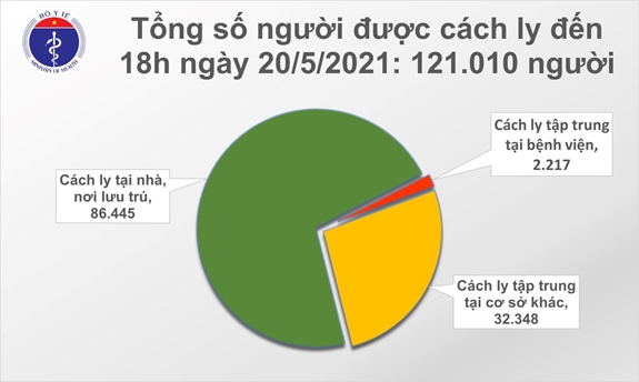 Như vậy, Việt Nam có tổng cộng 3.331 ca ghi nhận trong nước và 1.478 ca nhập cảnh. Số lượng ca mắc mới tính từ ngày 27-4 đến nay là 1.761 ca. Tổng số người tiếp xúc gần và nhập cảnh từ vùng dịch đang được theo dõi sức khỏe (cách ly) là 121.010 người. Trong đó, cách ly tập trung tại bệnh viện là 2.217 người; cách ly tập trung tại cơ sở khác là 32.348 người; cách ly tại nhà, nơi lưu trú là 86.445.