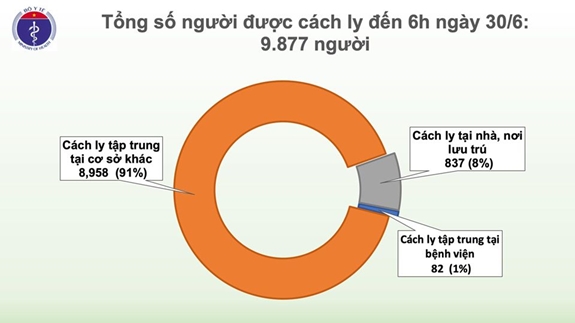 Như vậy tính đến nay, Việt Nam ghi nhận 355 mắc Covid-19, trong đó 215 ca mắc Covid-19 nhập cảnh đã được cách ly ngay, không có khả năng lây ra cộng đồng. Cả nước vẫn còn 9.877 người tiếp xúc gần và nhập cảnh từ vùng dịch đang được cách ly, theo dõi sức khỏe, trong đó 82 người cách ly tập trung tại bệnh viện; 8.958 người cách ly tập trung tại cơ sở khác và 837 người cách ly tại nhà, nơi lưu trú.