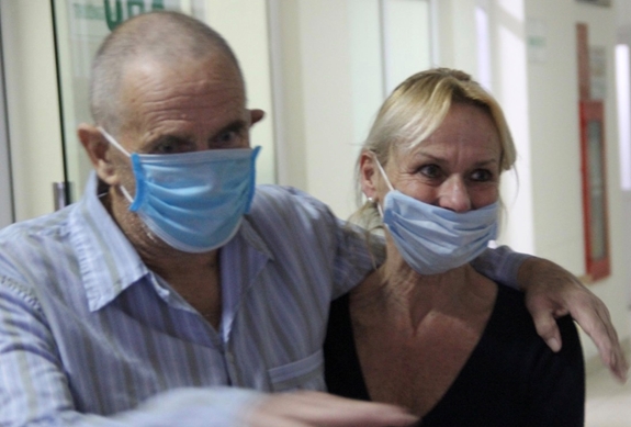 Vợ chồng ông Dixong John Garth, quốc tịch Anh cảm ơn các bác sĩ Việt Nam đã cứu sống họ. |
