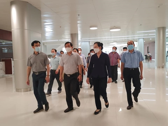 | Đồng chí Lê Thị Thủy, Bí thư Tỉnh ủy Hà Nam (thứ 2 từ bên phải sang); Cục trưởng Cục Quản lý Khám chữa bệnh Lương Ngọc Khuê (áo trắng) và Giám đốc Bệnh viện Bạch Mai Nguyễn Quang Tuấn (ngoài cùng bên trái), kiểm tra bệnh viện dã chiến. |