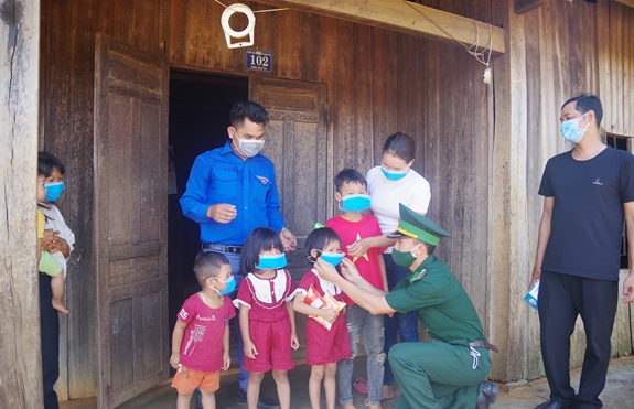 Cùng với tinh thần vừa bảo vệ vững chắc chủ quyền lãnh thổ quốc gia, vừa tạo lá chắn chống dịch trên tuyến biên giới, tại địa bàn xã Quảng Trực, huyện Tuy Đức những ngày qua, mặc dù thời tiết không thuận lợi, mưa liên tục kéo dài, đường sá đi lại khó khăn, nhưng với tinh thần trách nhiệm cao, cán bộ, chiến sĩ Đồn Biên phòng Đắc Dang đến từng thôn, bon, từng gia đình để tuyên truyền, phát khẩu trang, dung dịch sát khuẩn PCD Covid-19. Các nội dung tuyên truyền được đưa lên hệ thống loa phát thanh và dùng loa kéo tay đi tuyên truyền đến từng ngõ, từng nhà, từng gia đình, lên rẫy, kết hợp phát tờ rơi, cho bà con ký cam kết về các nội dung cần phải chấp hành, thực hiện, tuyên truyền cho bà con đeo khẩu trang, biết cách giữ gìn sức khỏe. Bà Thị Vô, bon Bu Prang 1 cho biết: Cán bộ Đồn Biên phòng Đắc Dang và Hội Phụ nữ, Đoàn Thanh niên đến tuyên truyền về bệnh bạch hầu và cách PCD Covid-19 nên gia đình tôi đã biết sự nguy hiểm của dịch Covid-19. Tôi còn động viên, hướng dẫn bà con trong bon biết cách phòng, chống để không lây lan cho mọi người”.