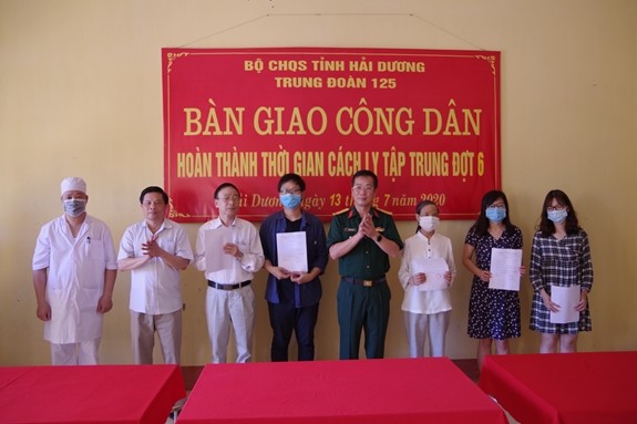 Sáng 13-7, Trung đoàn 125 (Bộ CHQS tỉnh Hải Dương) trao giấy chứng nhận hoàn thành thời gian cách ly 14 ngày cho 89 công dân trở về từ Pháp trên chuyến bay VN0018.