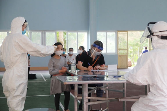 Sáng 6-5, tại Trung đoàn 244, Bộ CHQS tỉnh Quảng Ninh tiếp nhận, thực hiện cách ly 129 công dân Việt Nam trở về từ Pháp.