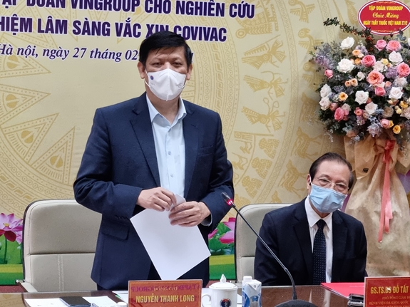 Tại buổi lễ, GS, TS Nguyễn Thanh Long, Ủy viên Trung ương Đảng, Bộ trưởng Bộ Y tế cho biết, Tập đoàn Vingroup tài trợ 20 tỷ đồng cho Viện Vaccine và Sinh phẩm Y tế (IVAC) trực thuộc Bộ Y tế sản xuất vaccine là một hoạt động ý nghĩa giúp thúc đẩy nhanh quá trình thử nghiệm lâm sàng của loại vắc-xin phòng ngừa Covid-19 “Made in Vietnam”. Từ đó, Việt Nam có thêm nhiều cơ hội đánh giá khoa học một cách đầy đủ, toàn diện để khẳng định tính khả thi của vắc-xin Covivac đạt hiệu quả, có tính an toàn và hiệu quả. Bộ trưởng tin tưởng, ngành y tế sẽ đạt được kết quả tốt trong nghiên cứu vắc-xin phòng ngừa Covid-19, tiến tới Việt Nam sớm hoàn toàn tự chủ nguồn vắc-xin này.
