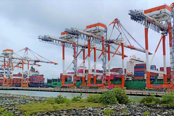 | Hoạt động bốc xếp hàng hóa tại cảng TCTT được duy trì ổn định. |