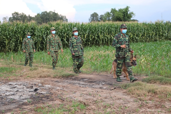 Cán bộ, chiến sĩ Bộ đội Biên phòng tỉnh An Giang tuần tra, kiểm soát nhằm ngăn chặn tình trạng người dân nhập cảnh trái phép qua biên giới. |