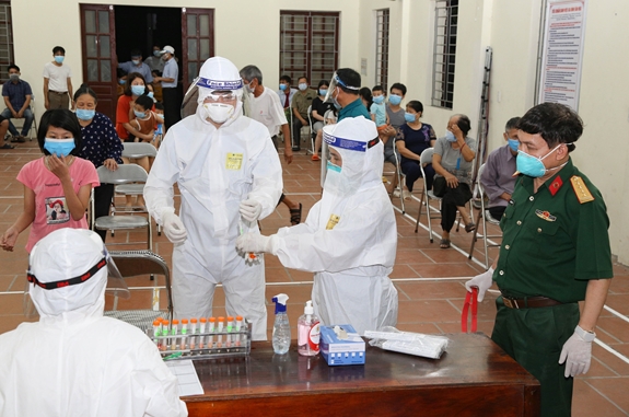| Bệnh viện Quân y 110 lấy mẫu xét nghiệm Covid-19 cho nhân dân xã Mão Điền, huyện Thuận Thành, tỉnh Bắc Ninh. |