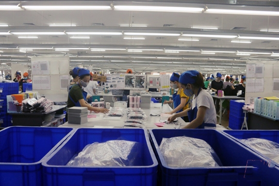 | Công nhân Công ty TNHH Sakurai Việt Nam, Khu kinh tế Nghi Sơn trong ca sản xuất. |