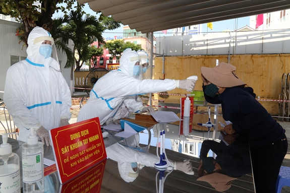 Kiểm tra thân nhiệt, phân loại bệnh nhân ngay tại cổng bệnh viện. |