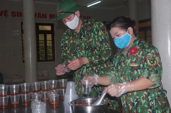 Tổ nuôi quân Tiểu đoàn 1, Trung đoàn 996, Bộ CHQS Quảng Bình có 15 chiến sĩ, đảm nhiệm phần việc bảo đảm ăn, uống cho trên 400 người gồm cán bộ, chiến sĩ và công dân trong khu cách ly. Để hoàn thành công việc, mỗi chiến sĩ nuôi quân phải thức dậy từ 3 giờ sáng và kết thúc công việc gần 12 giờ đêm cùng ngày. Đối tượng phục vụ cũng đa dạng, từ người già, trẻ nhỏ đến phụ nữ mang thai với tâm sinh lý mỗi người một khác. "Không chỉ bảo đảm cơm chín, nước sôi, mà thực đơn mỗi ngày cũng thường xuyên được thay đổi để mọi người cảm thấy ngon miệng. Vất vả là vậy nhưng chưa một ai phàn nàn hay sao nhãng với công việc ", Đại úy Phan Thanh Hải, nhân viên Tổ nuôi quân cho biết.