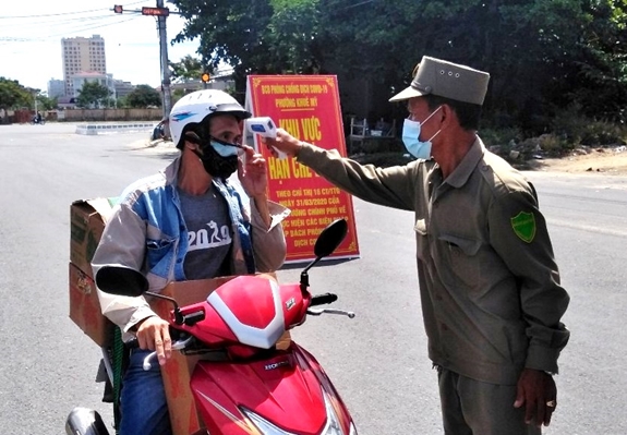 Kiểm soát người ra vào tại các chốt phòng, chống dịch Covid-19 trên địa bàn phường Khuê Mỹ (quận Ngũ Hành Sơn, TP Đà Nẵng).