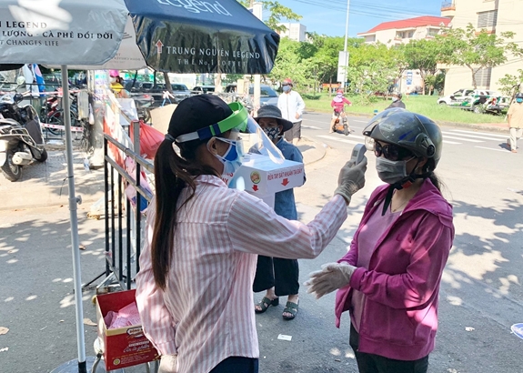 Kiểm soát người ra vào chợ Nại Hiên Đông (quận Sơn Trà, TP Đà Nẵng).
