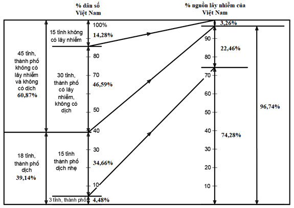 30 tỉnh, thành phố có lây nhiễm, không có dịch, chiếm 46,59% dân số nhưng chỉ có 3,26% số người đang điều trị